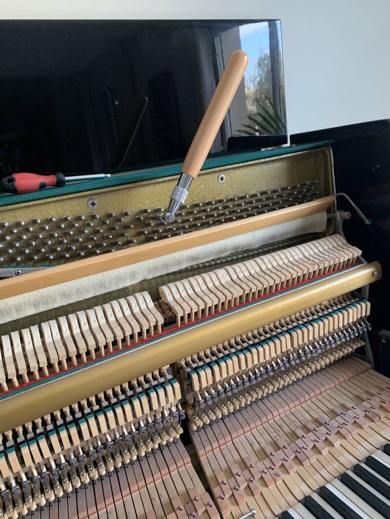 Le but est d'obtenir un accord optimal. Le piano est démonté et accordé de façon standard. Ce processus prend environ une heure pour être réalisé correctement et doit se dérouler dans le silence le plus complet.